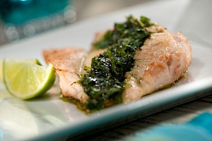 Pechuga asada con salsa de cilantro