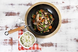 Salteado de pollo con mango
