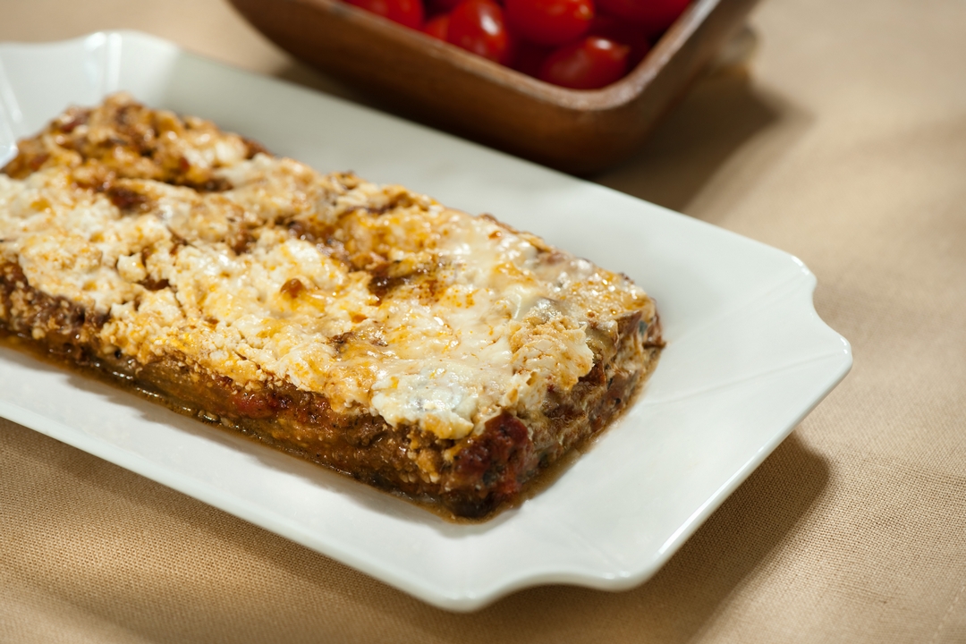 - En un pyrex engrasado colocamos las berenjenas, luego el queso y parte de la salsa.