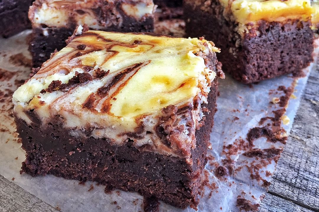 - Verter encima de la mezcla de chocolate, con ayuda de un cuchillo de punta fina, deslizar e integrar ambas mezclas haciendo vetas.