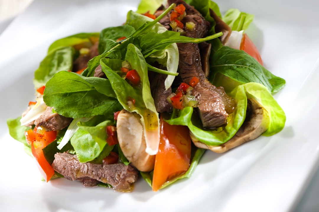 - Rebanamos la carne ya cocida y mezclamos con la ensalada.