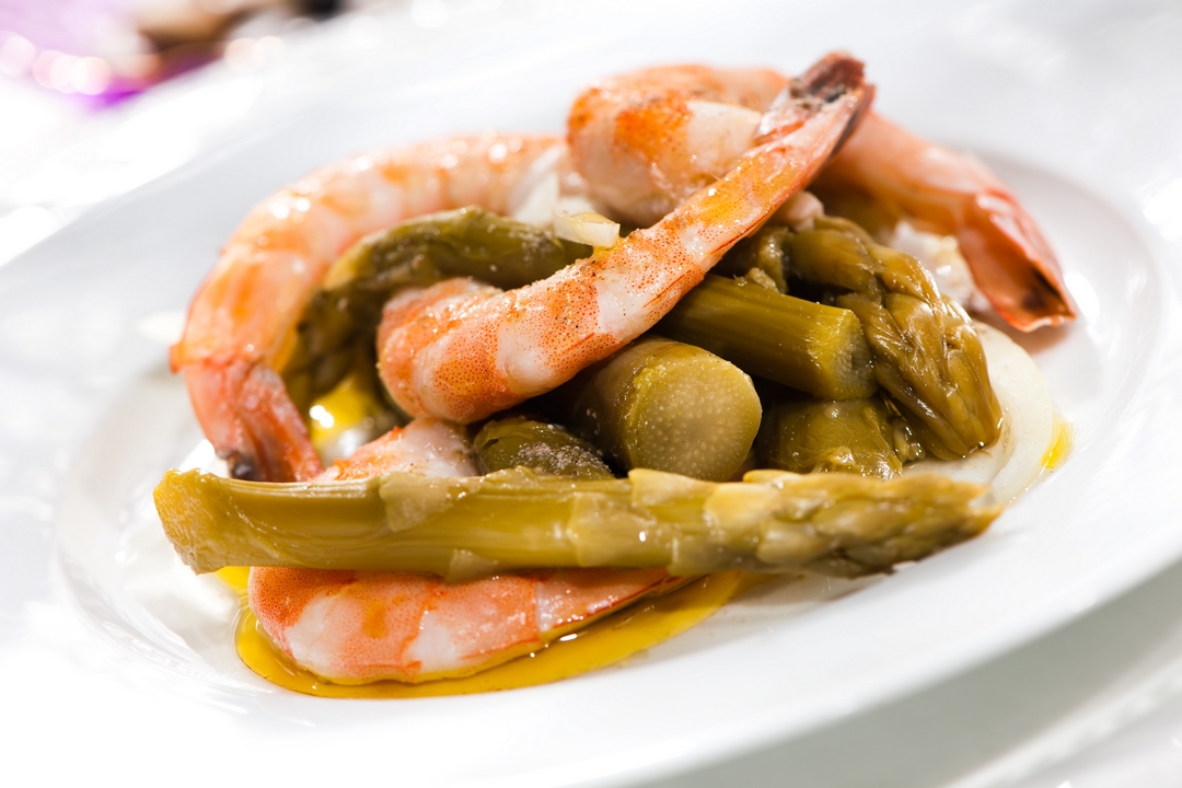 - Mezclamos los espárragos con los camarones en un bowl, agregamos aceite de oliva, sal, pimienta y jugo de limón.