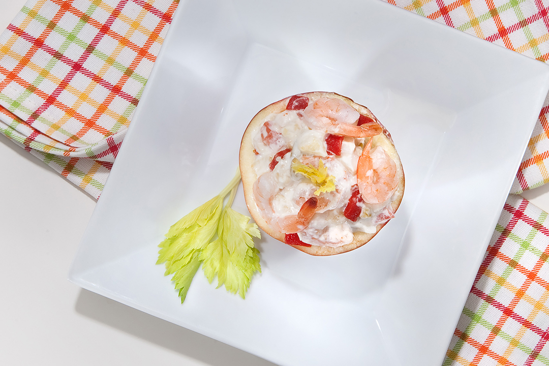 - Colocamos la mezcla en las medias manzanas reservadas y servimos sobre hojas de lechuga fresca.