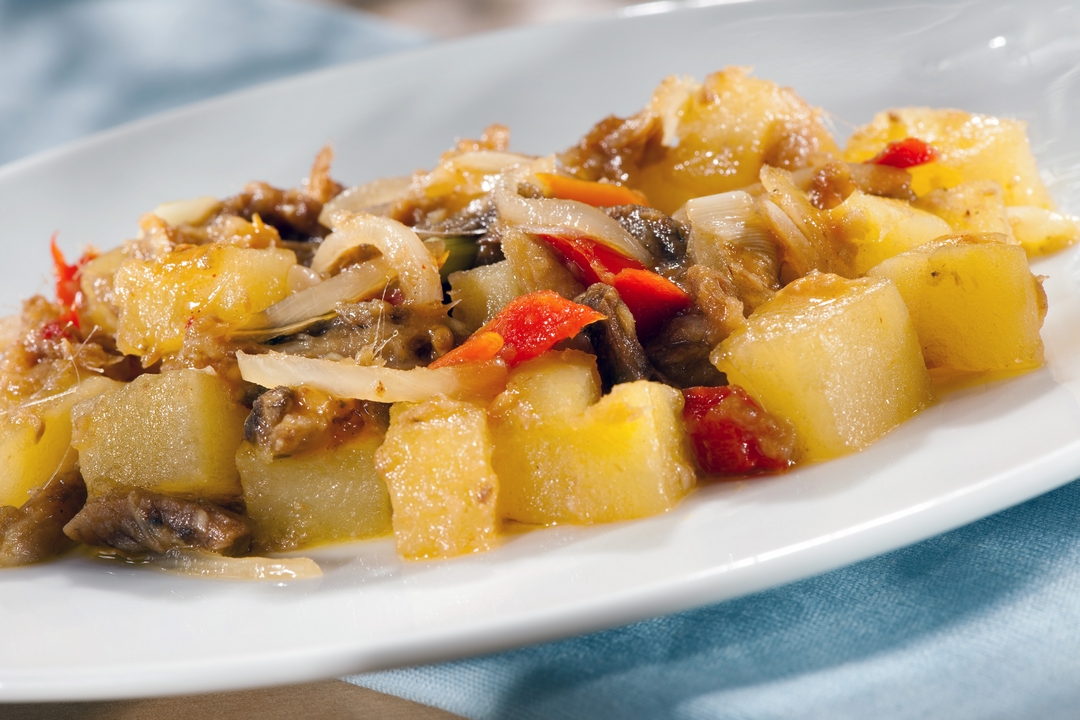 - Cuando el arenque esté desalado lo hacemos tiritas y lo agregamos a las papas.