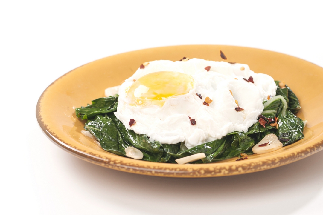 Para servir, en un plato colocamos las espinacas salteadas y sobre estas los huevos poché.