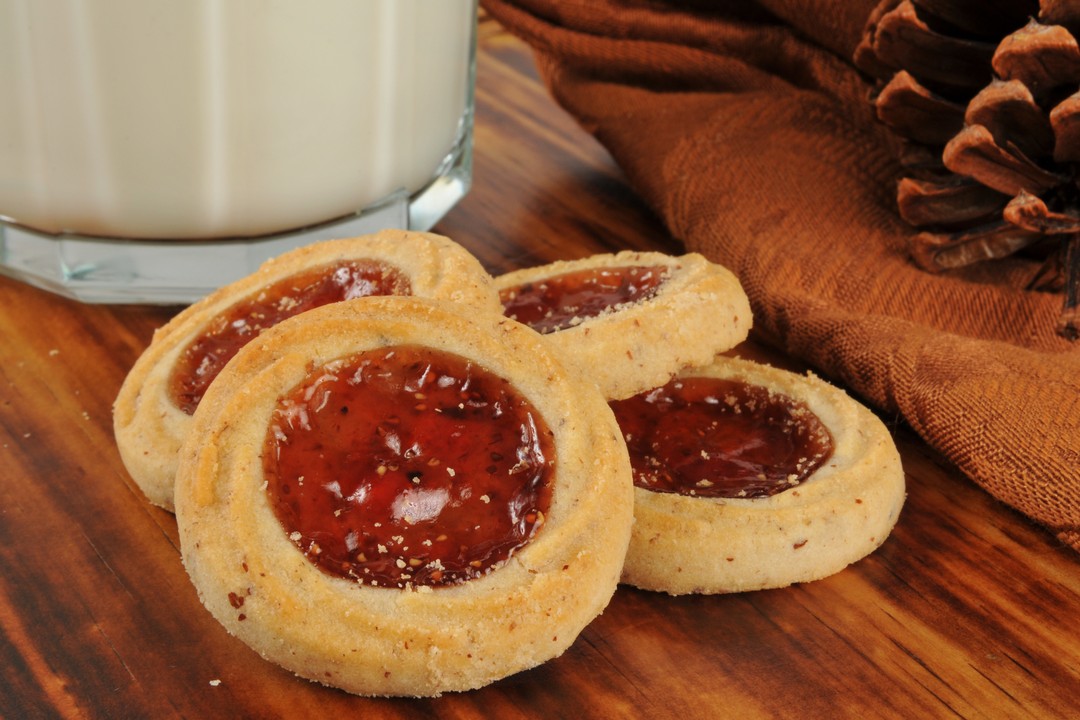 Ir pasando una a una las bolitas por las claras previamente batidas y luego por las nueces, y hacerles un hueco con un dedo para rellenarlas con la mermelada.