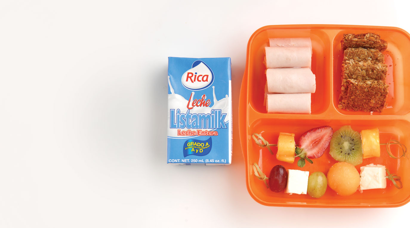 Pinchitos de frutas y queso, rollitos de jamón de pavo y jugo Categoría Menú infantil Dificultad Fácil Porciones Ingredientes Pinchitos de frutas y queso 1 barra de granola 3 rollitos de jamón de pechuga de pavo 1 cajita de jugo 100% Preparación