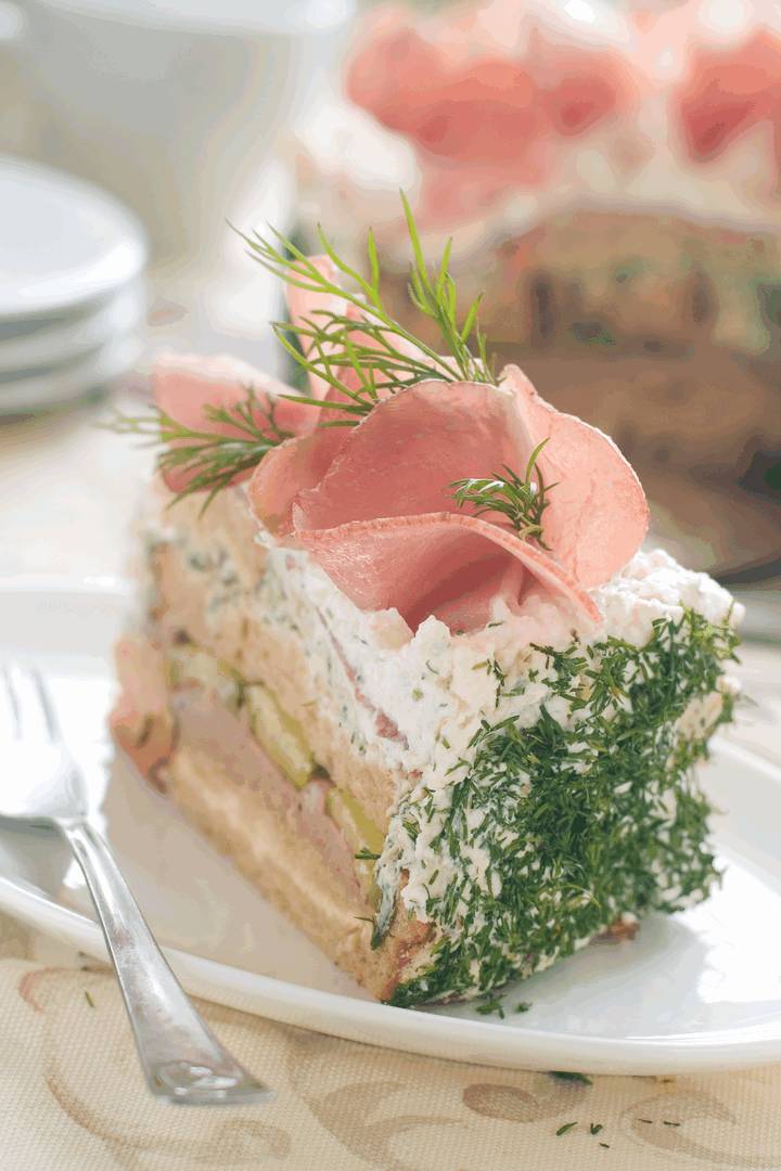Cubrir con cream cheese y decorar con mermelada de pimientos y puerro.