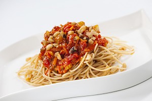 Pasta en salsa de tomate y nueces (Para antes de correr)