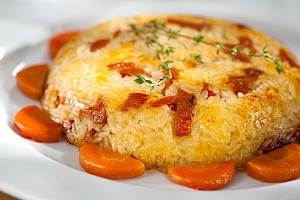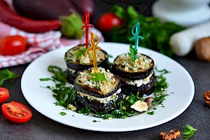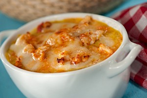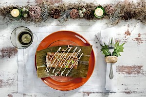 Pastel en hojas rellenos de pollo con crema de Blue cheese y nueces