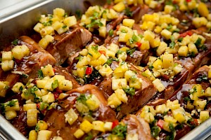 Salsa de chutney de mango para acompañar un fondue de carne