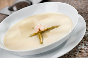 Sopa de espárragos y camarones