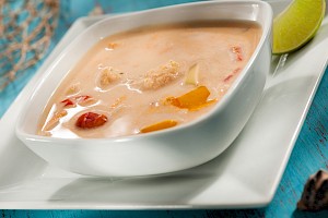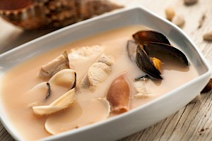 Sopa de pescado con coco