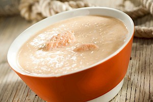 Sopa cremosa de salmón y maíz