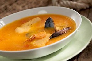 Sopa de pescado y vino blanco