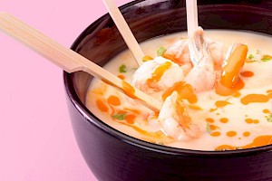 Crema de mango con camarones