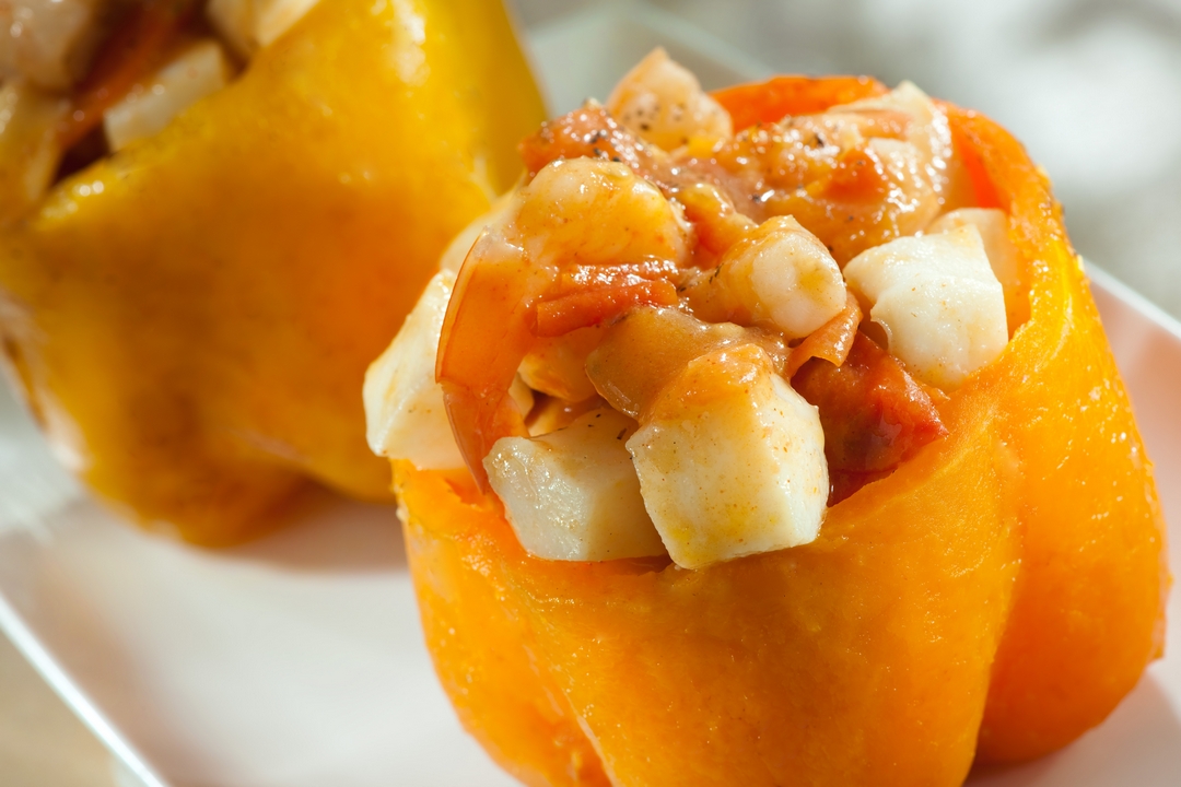 - Una vez pelados, dejamos enfriar y rellenamos con la mezcla de mariscos.