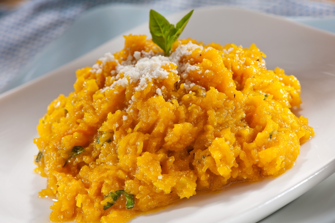- Pelamos y ponemos a hervir la auyama en agua con sal.