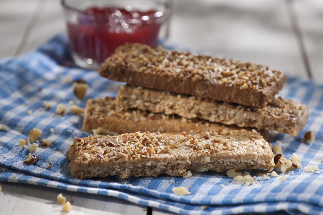 - En un bowl mezclamos harina, avena, nueces, almendras y azúcar.