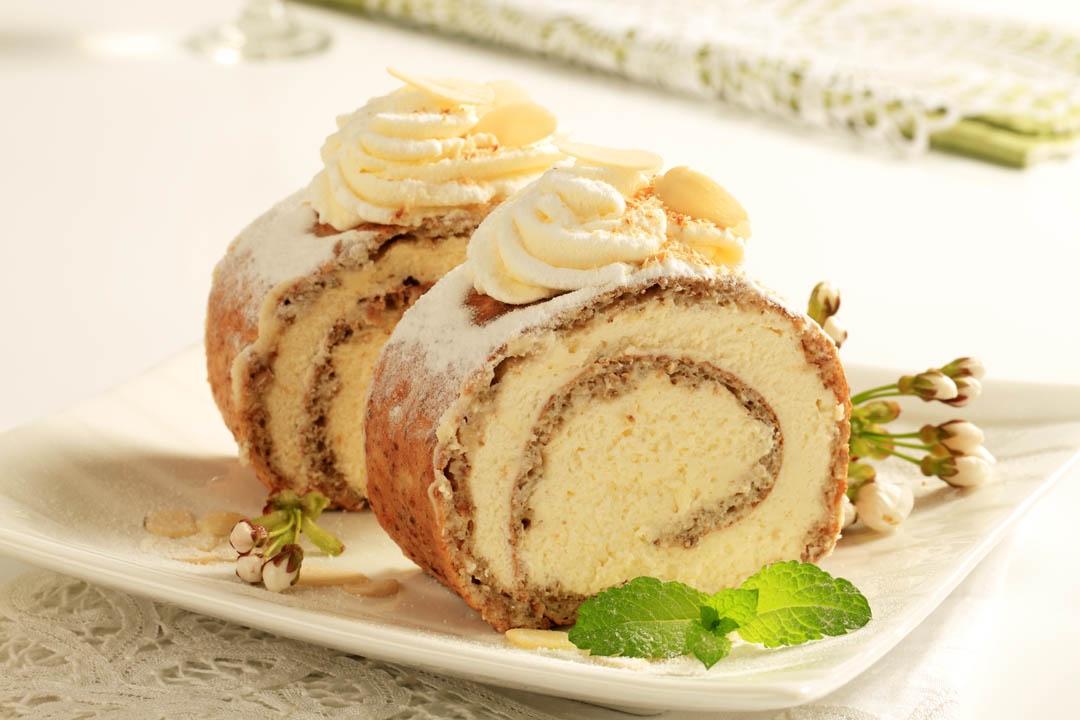 Temperar con la leche tibia para que los huevos no se cocinen de golpe. Incorporar todo a la olla y mover constantemente hasta que la crema pastelera espese a fuego medio. Retirar del fuego. Incorporar de manera vigorosa el licor con la gelatina. Se debe previamente añadir la gelatina en forma de lluvia al licor y entibiar por algunos segundos en el microondas. Colocar en un baño frío para enfriar rápidamente, cubierta de papel film/plástico. Ensamblaje: enrollar la masa fría con la crema pastelera. Decorar con azúcar pulverizada.