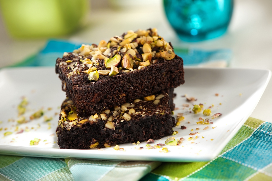Brownies con pistachos y piñones