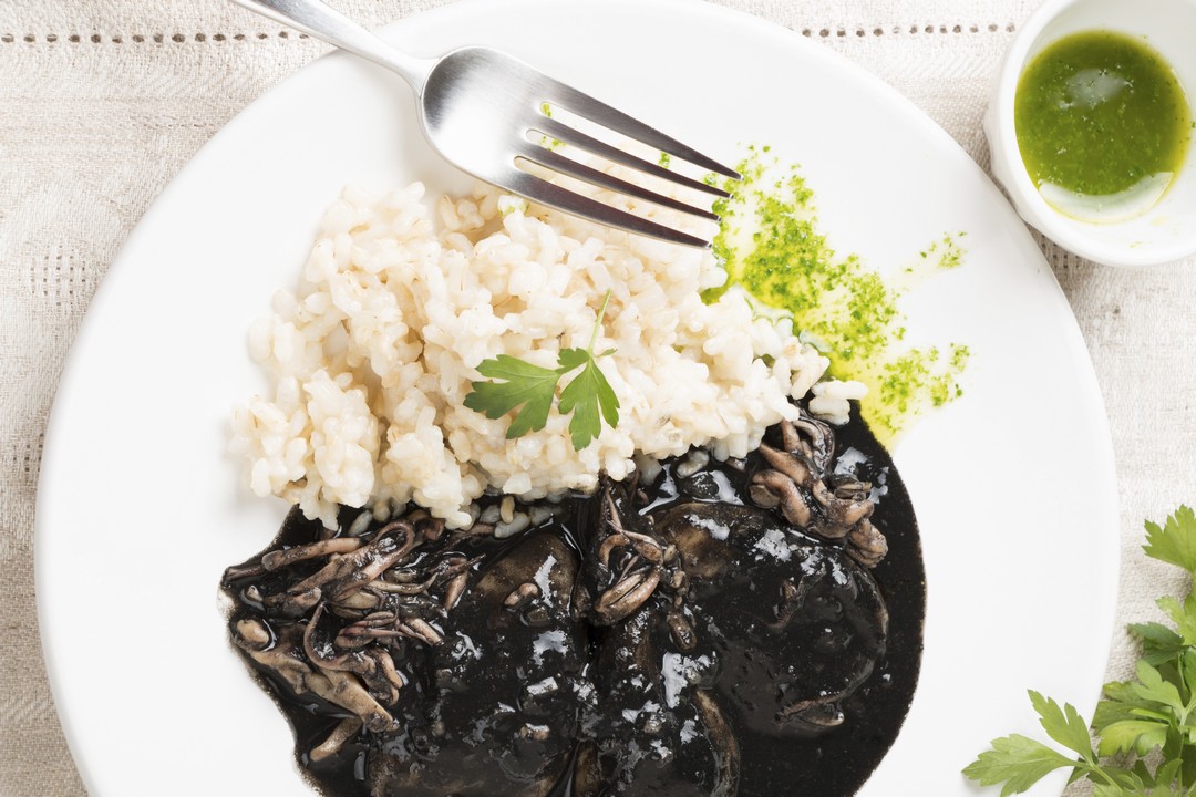 Limpiar cuidadosamente los calamares, teniendo mucho cuidado de no desperdiciar la tinta de los mismos, por lo cual a medida que vayamos obteniéndola debemos reservarla en un recipiente.