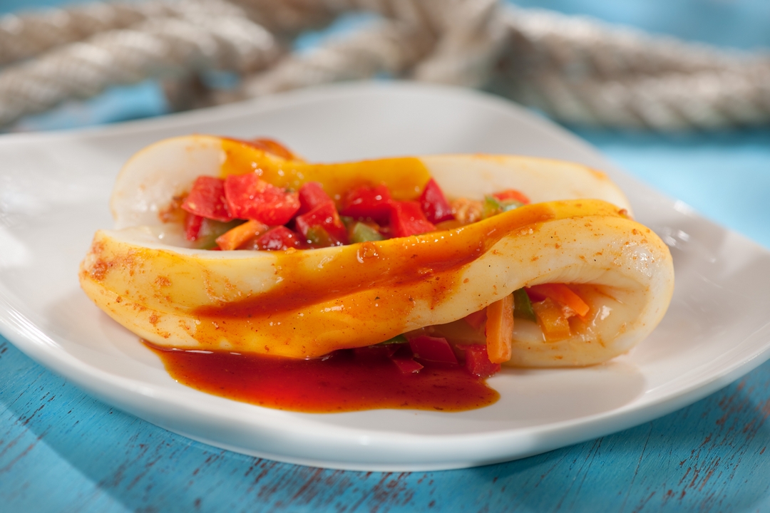 - Cuando los calamares estén cocidos, los bañamos con esta salsa y servimos.