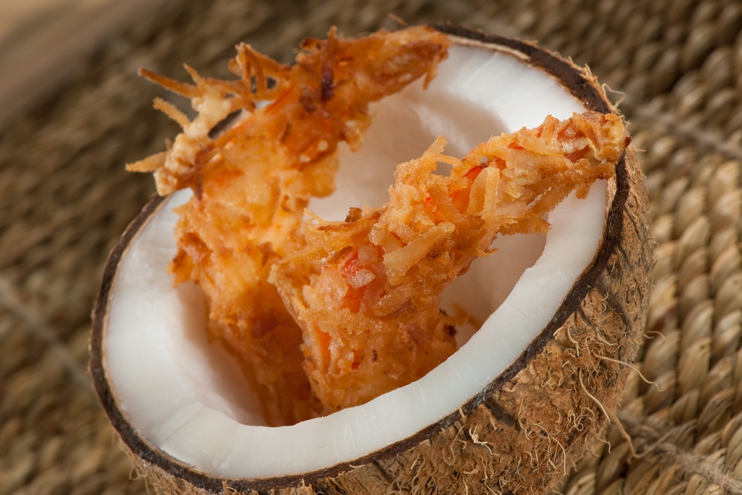 - Luego, pasamos los camarones primero por los huevos y después por el coco rallado con la leche.