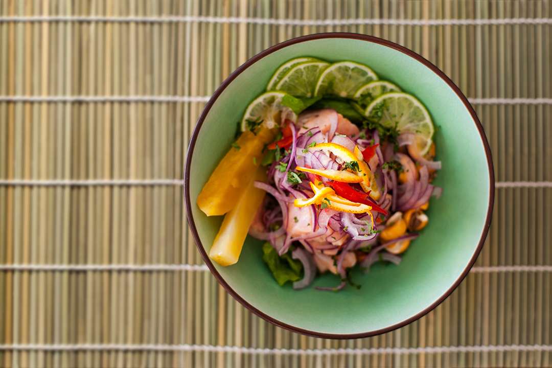- En un bowl colocar el pescado cortado en cubos, agregarle sal para que los poros se abran y pueda entrar todo el sabor.