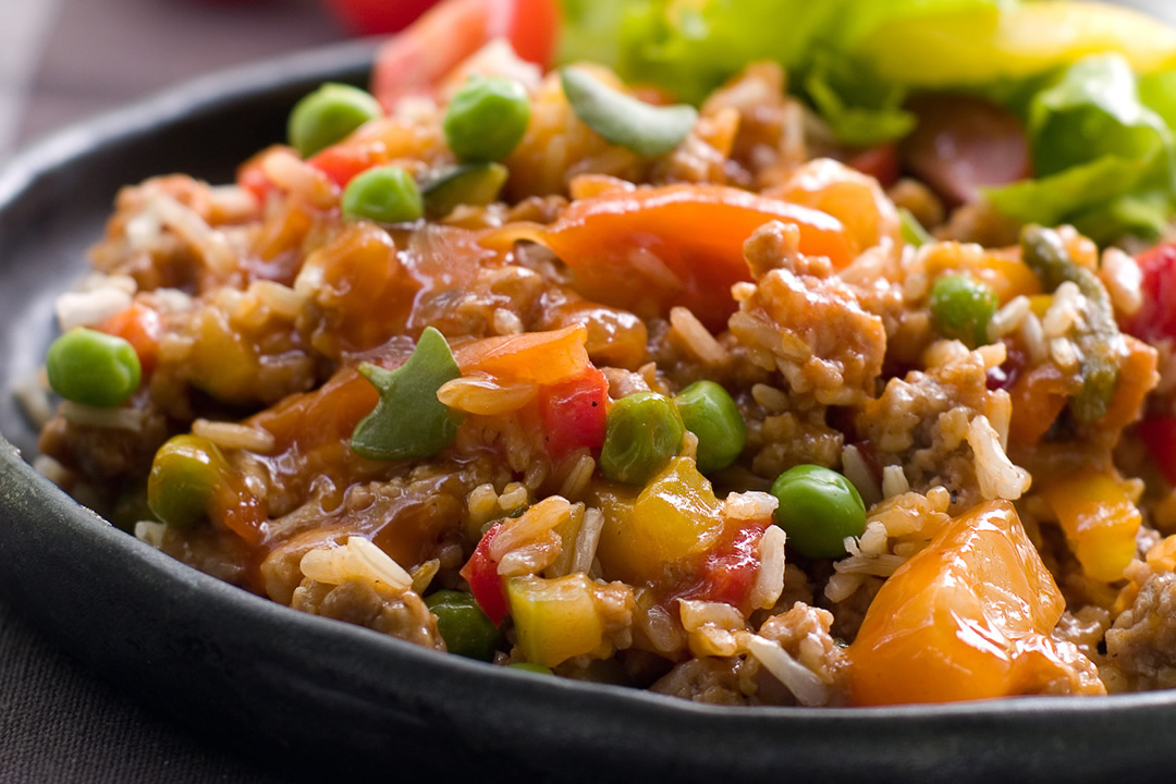 - En un wok, calentar el aceite con el jengibre y el ajo, y agregar el arroz; saltear y reservar.