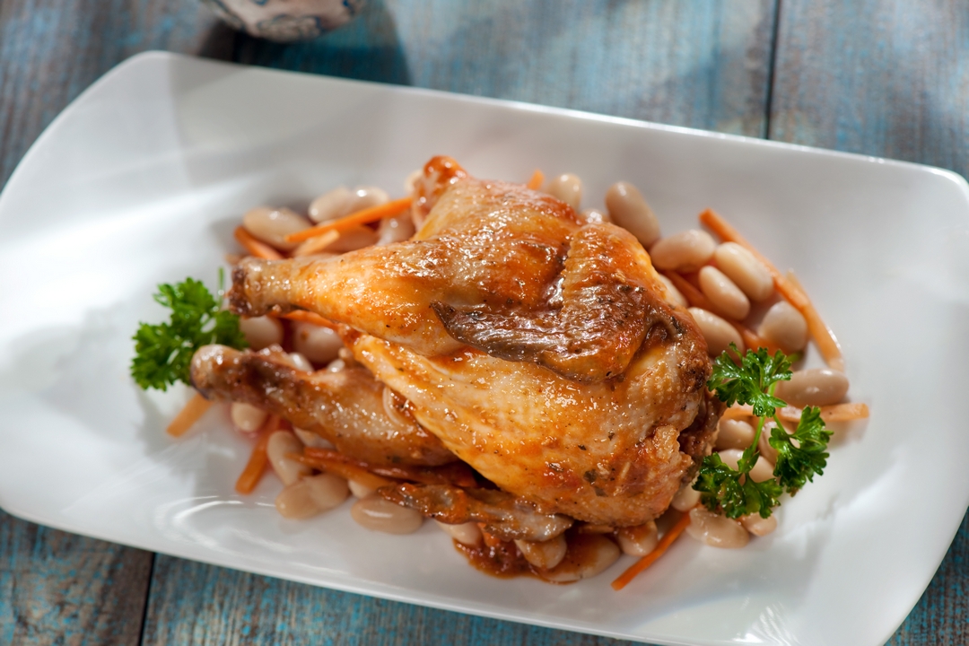 - Sazonamos las codornices con sal, pimienta, ajo, un chorrito del jerez y la hoja de laurel.