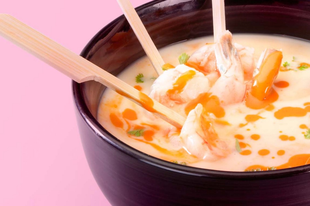 Por último, colocar esta mezcla en una procesadora y volverla una crema. Agregar los camarones antes de servir.