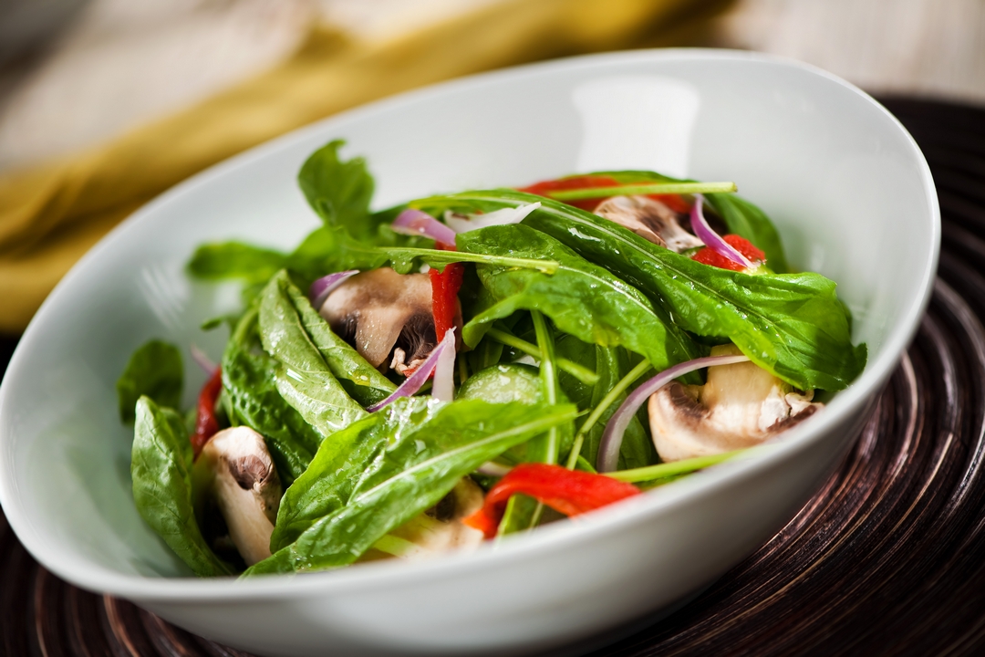 - Lavamos bien las lechugas y la rúcula y las colocamos en un bowl.