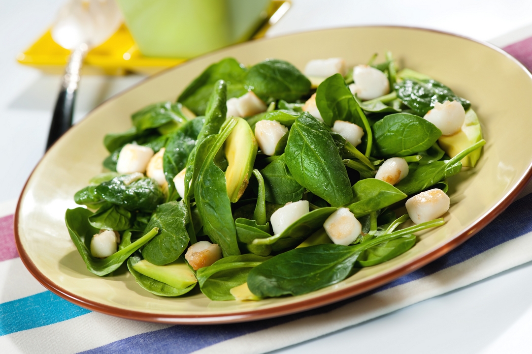 - Pelamos el aguacate y mezclamos con las espinacas.