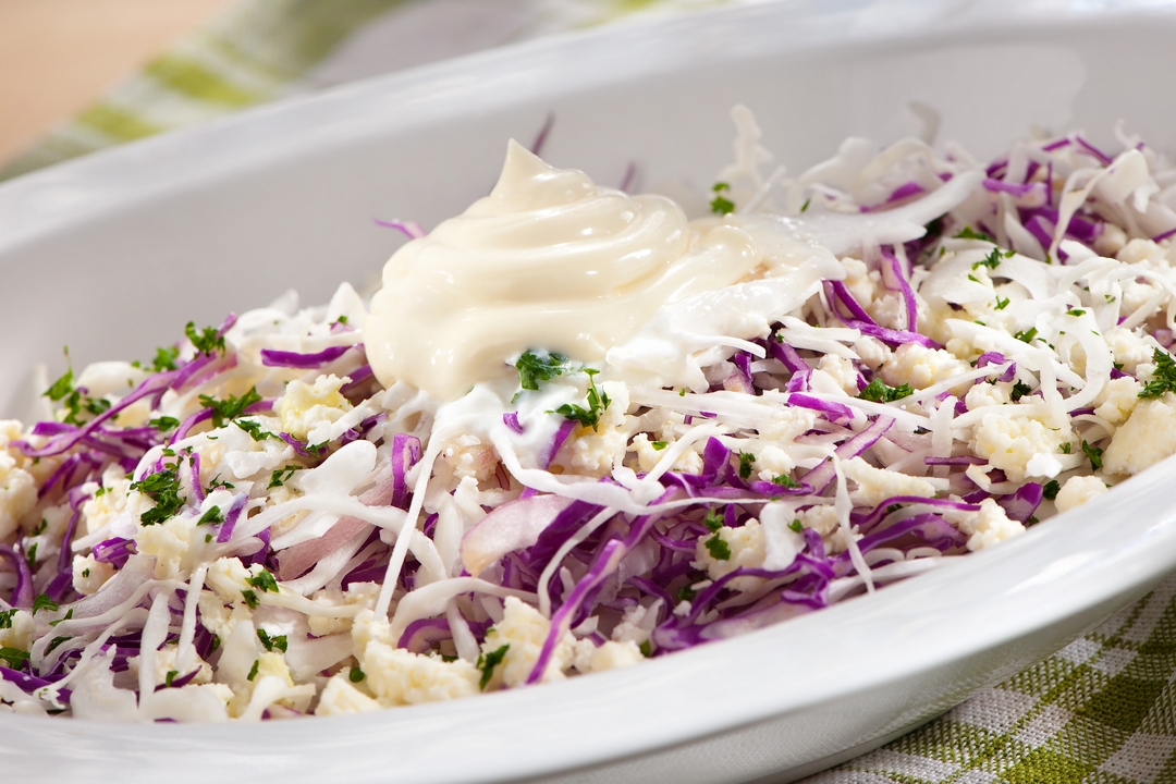 - 3 tazas repollo morado y 3 tazas repollo blanco cortados finamente