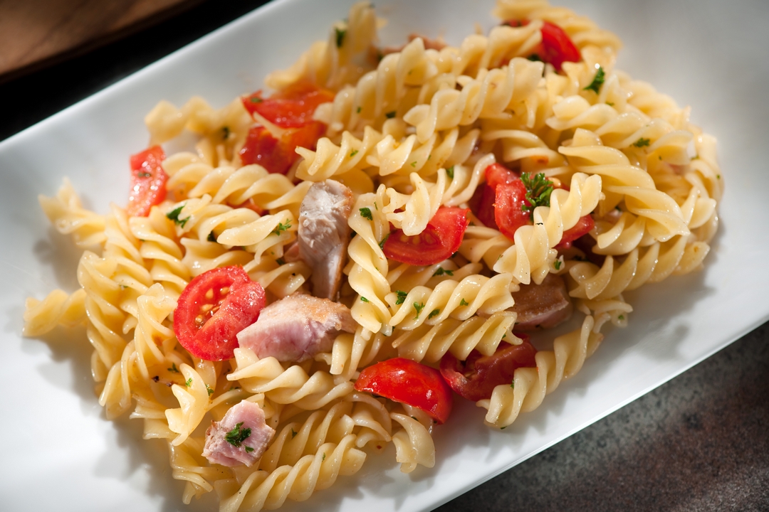Luego añadimos la pasta, mezclamos bien y agregamos la lata de atún bien escurrida.