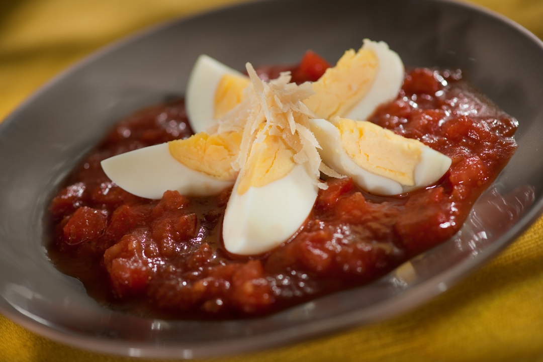 - Servimos esta salsa con los huevos partidos y el queso parmesano recién rallado por encima.