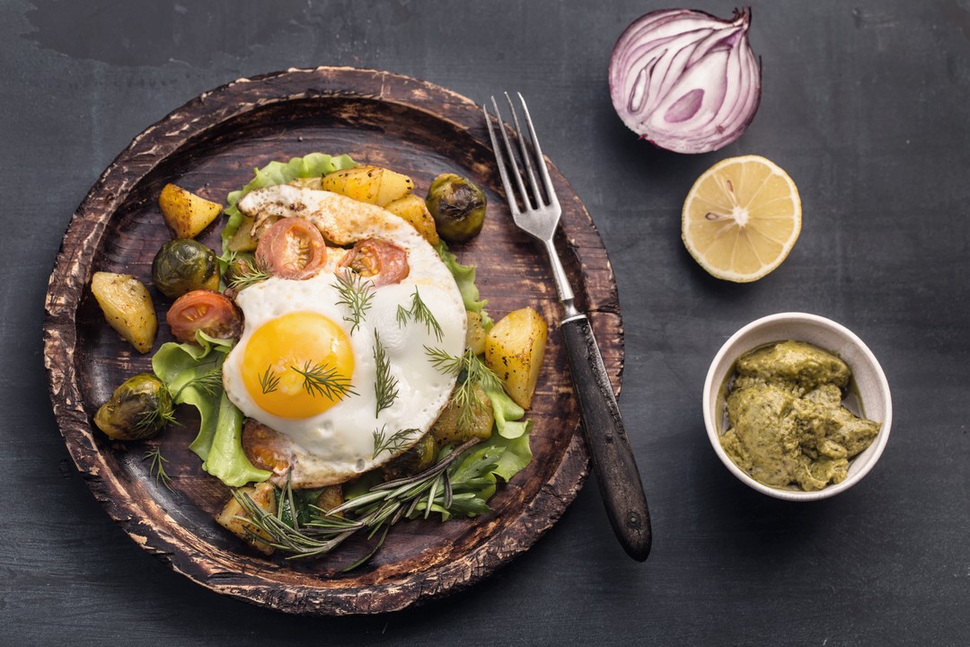 Cuando las papas y las batatas estén cocidas, agregar el kale y el puerro reservados. Por último, colocar los huevos fritos encima. Servir de inmediato.