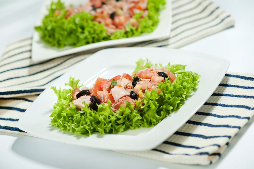- Unimos en un bowl los tomates, cebolla, aceitunas y atún.