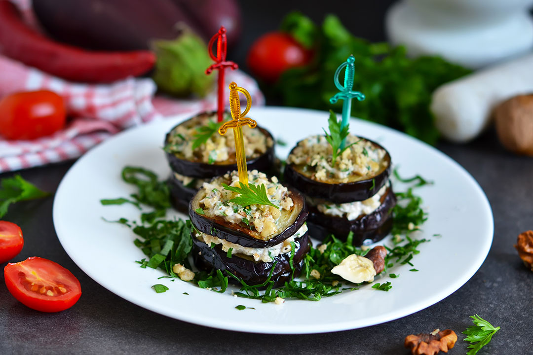 Engrasar con un poco de aceite de oliva el fondo de un molde e iniciar el armado del milhojas. Es el mismo procedimiento como si se prepara una lasaña, un poco de salsa de tomate como base, luego una capa de berenjena, seguido de plátano maduro distribuidos uniformemente, salsa de tomate y queso mozzarella. Repetir estos pasos hasta que se tengan las capas ya formadas, por encima terminar con salsa de tomate y queso mozzarella junto con el parmesano (ojo, siempre llevar la misma dirección con las lonjas).