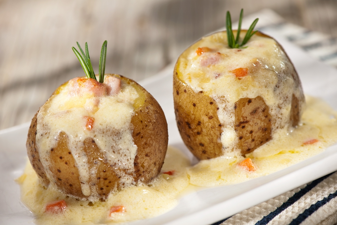 Papas rellenas con vegetales y salsa bechamel
