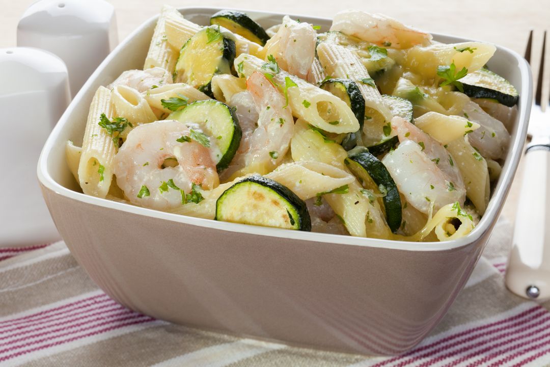 Agregar los zucchinis y camarones, volver a mezclar. Comprobar sal y pimienta y servir de inmediato.