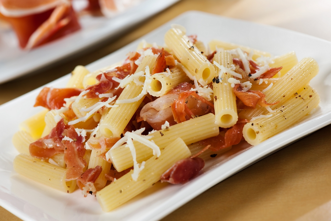 - Rallamos el queso sobre la pasta y luego la mezclamos bien con el jamón y la mantequilla.