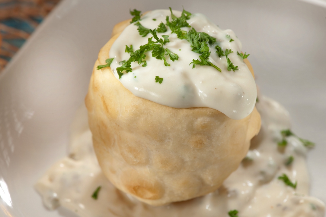 Aparte, ponchamos la cebolla y el ajo, y cuando estén agregamos el bacalao junto con el puerro y el perejil. Reservamos.