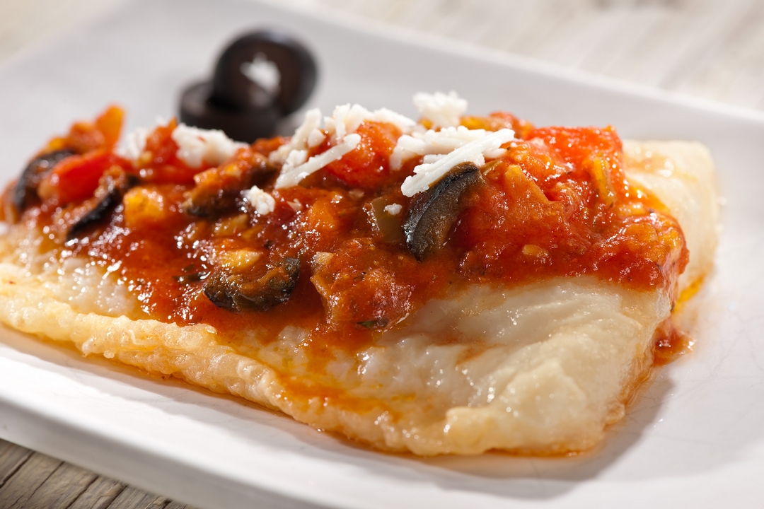 Servimos el pescado bañado con esta salsa, y esparcimos por encima el queso parmesano rallado.