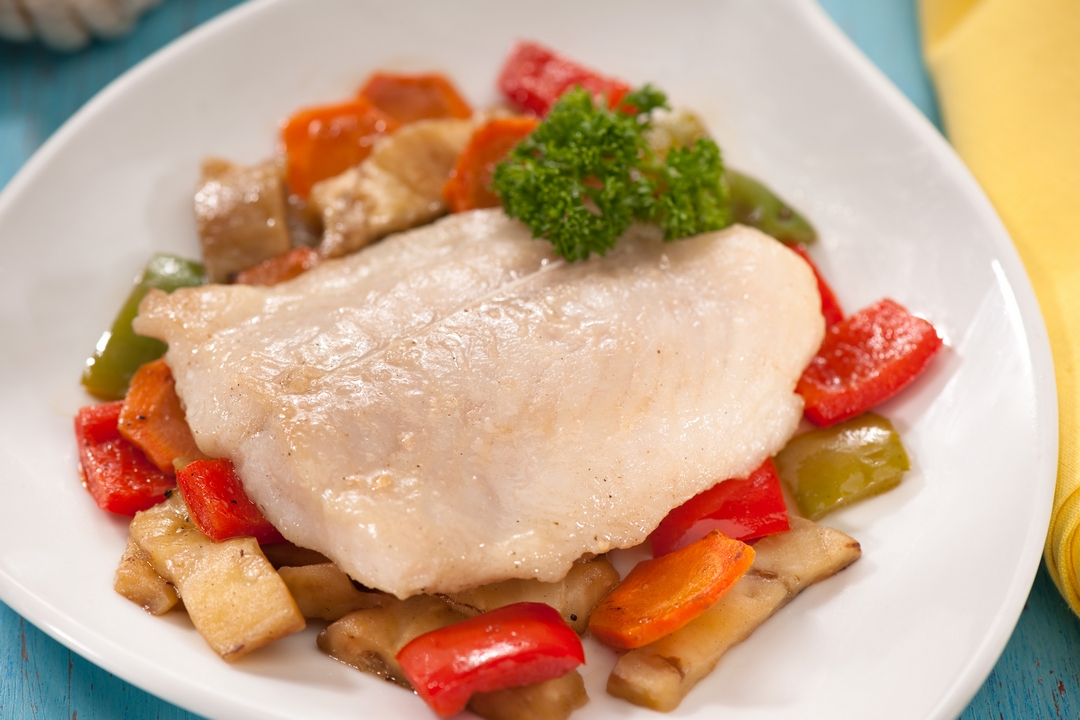 - Mientras, sazonamos el pescado con el laurel, sal y pimienta, y reservamos.