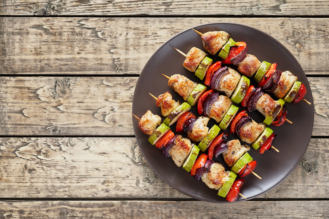 - Pasar las uvas por un poco de la mezcla del aceite y hacer los pinchos, intercalando el pollo con las uvas.