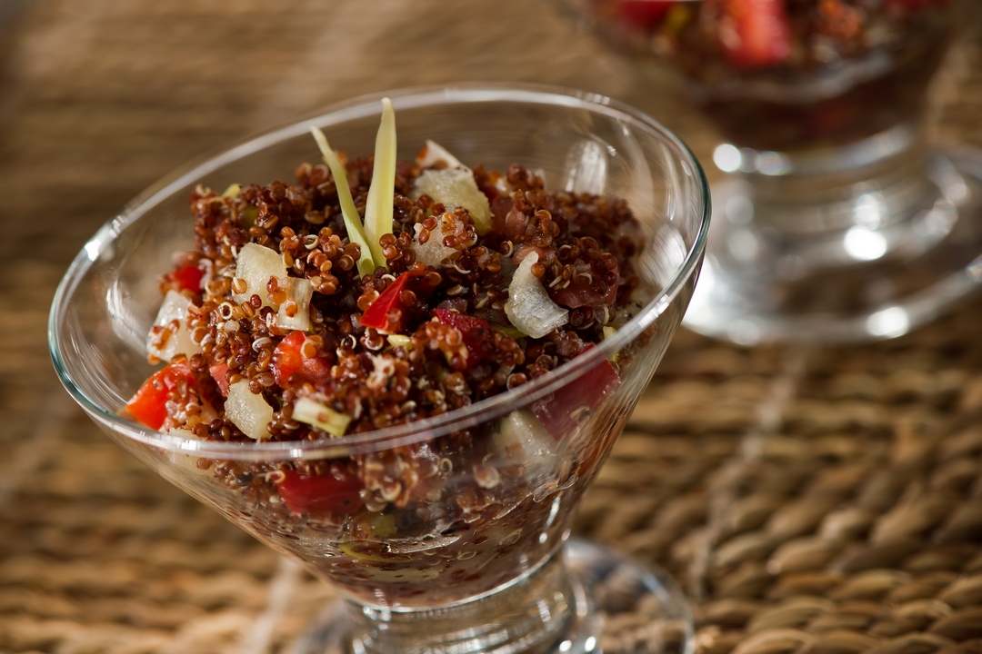 - Preparamos la quínoa hervida con agua y una pizca de sal.