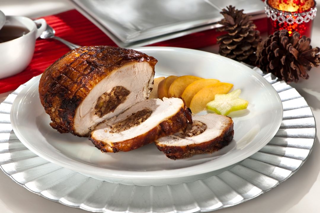 Rollo de pechuga con uvas y frutos secos