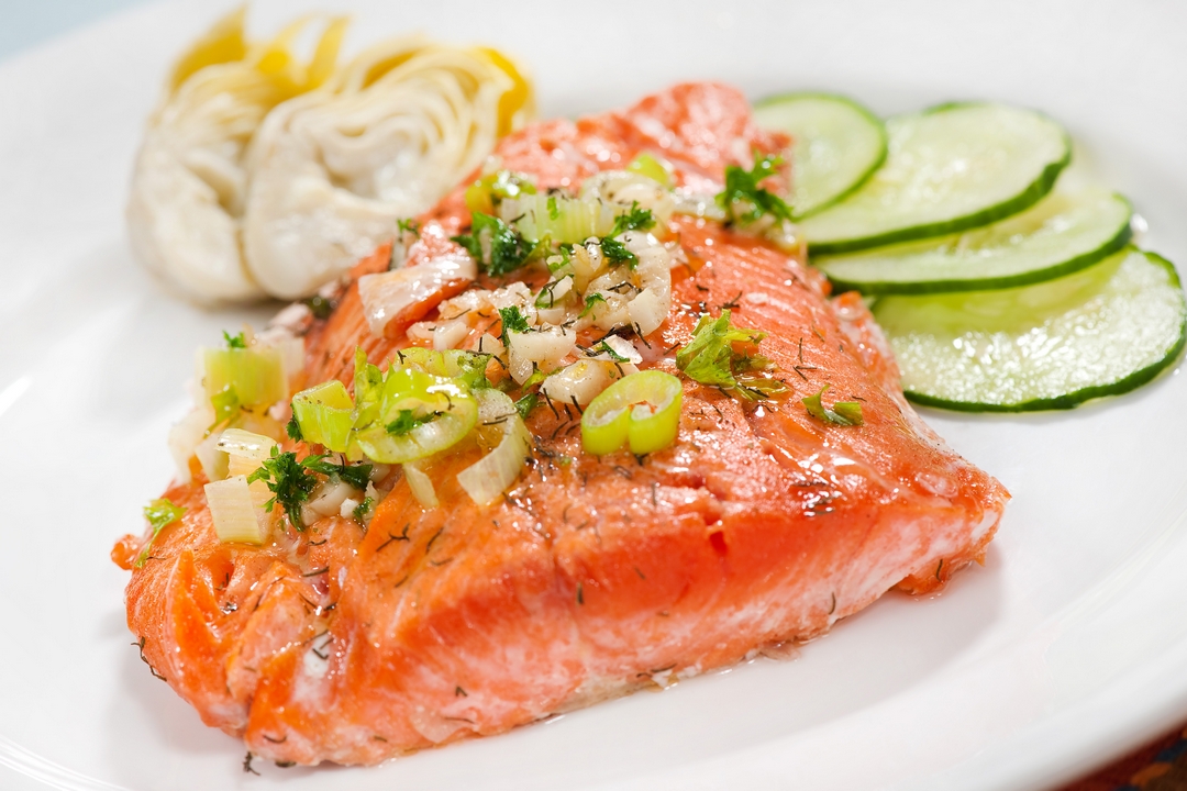 - Cortar el papel encerado suficiente para acomodar los dos filetes de salmón en el centro.